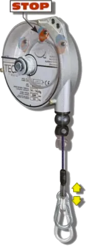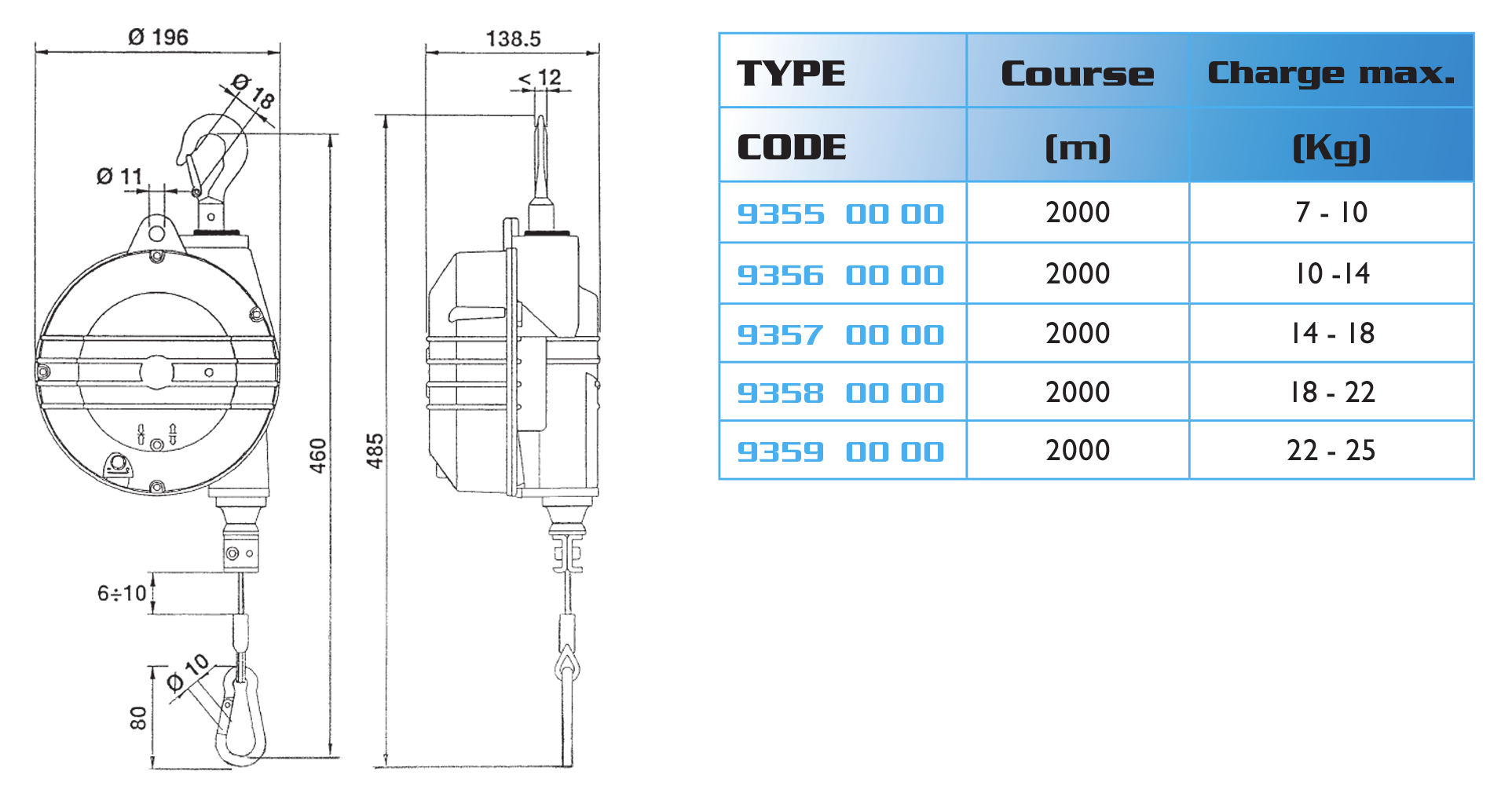 VORTEILE: - Sicherheitssystem, das den Fall der Last blockiert, wenn die Feder bricht - Präzise geführtes Seil, um Kreuzungen zu vermeiden, Überlappungen und Blockierungen - einstellbare Kapazität mit Schnecke - obere Aufhängung mit drehbarem Sicherheitskarabiner - Vorrichtung zum Blockieren der Last in jeder Höhe - einstellbarer Hubanschlag - Federpaket für einfachen Austausch - Seilführung aus reibungsfreiem Material - kugelgelagerte, drehbare, konische Trommel - zusätzliche Sicherheitsaufhängung, elektrisch isoliert.