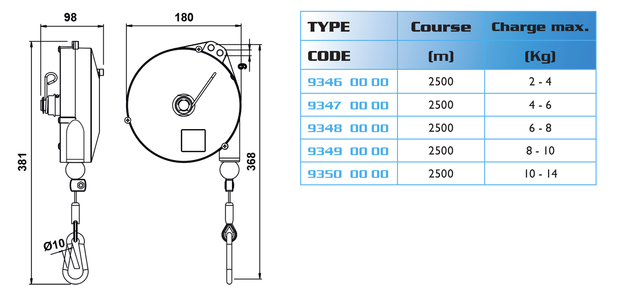 Datenblatt herunterladen Seilfederzüge SERIE MIT BLOCKIERUNGSVORRICHTUNGEN