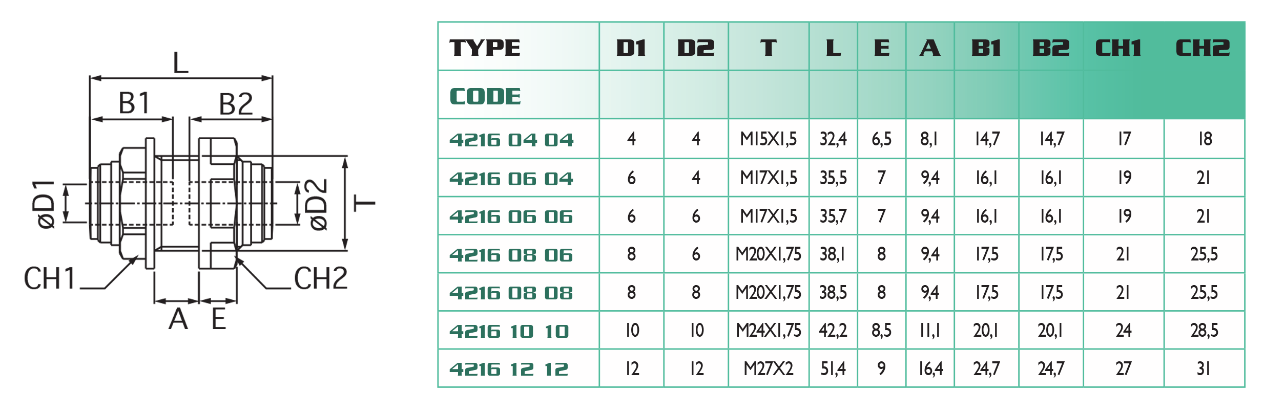- Maximaler Betriebsdruck : 20 bar (Ø 4 - 6 - 8) und 14 bar (Ø 10 - 12)