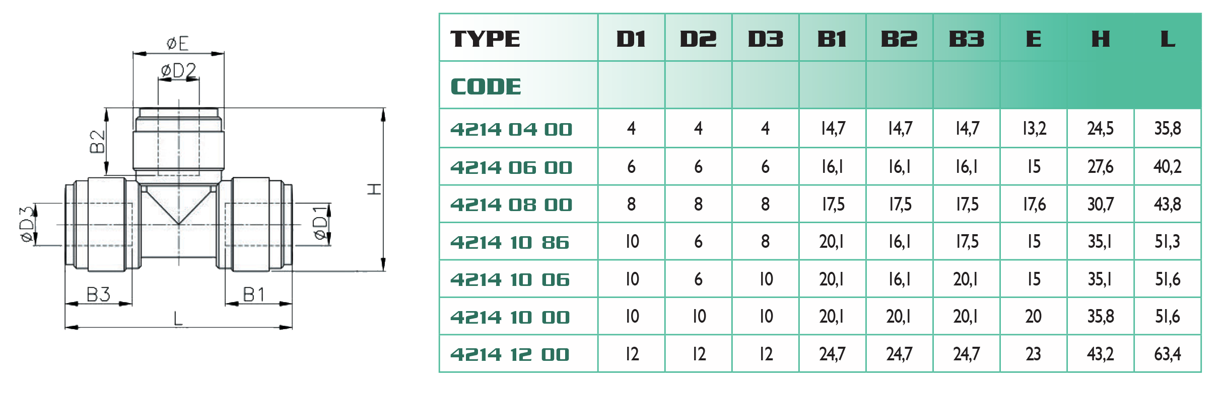 - Maximaler Betriebsdruck : 20 bar (Ø 4 - 6 - 8) und 14 bar (Ø 10 - 12)
