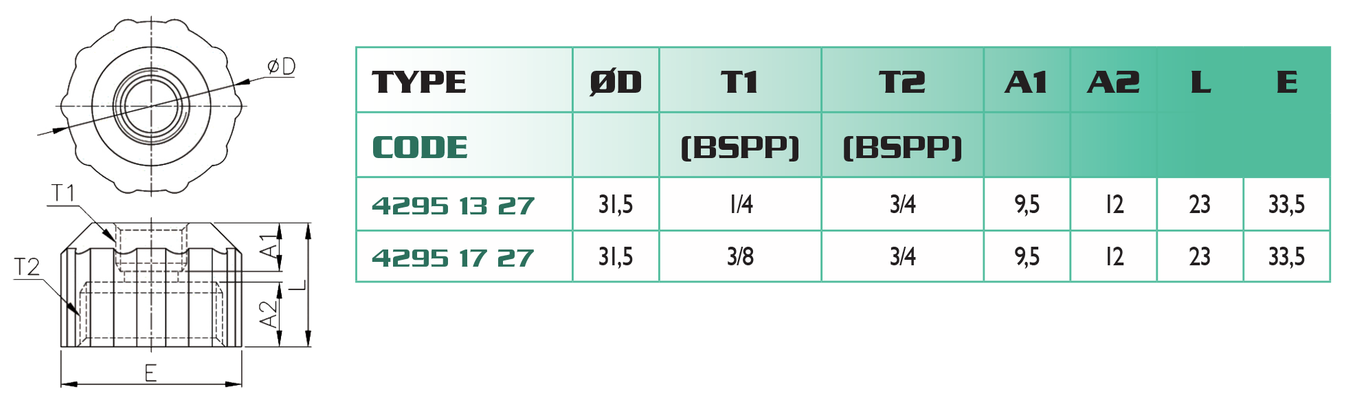 - Maximaler Betriebsdruck : 20 bar (Ø 4 - 6 - 8) und 14 bar (Ø 10 - 12)