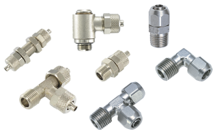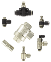 Flow control valves, with knurled adjusting screw, with push-in fittings