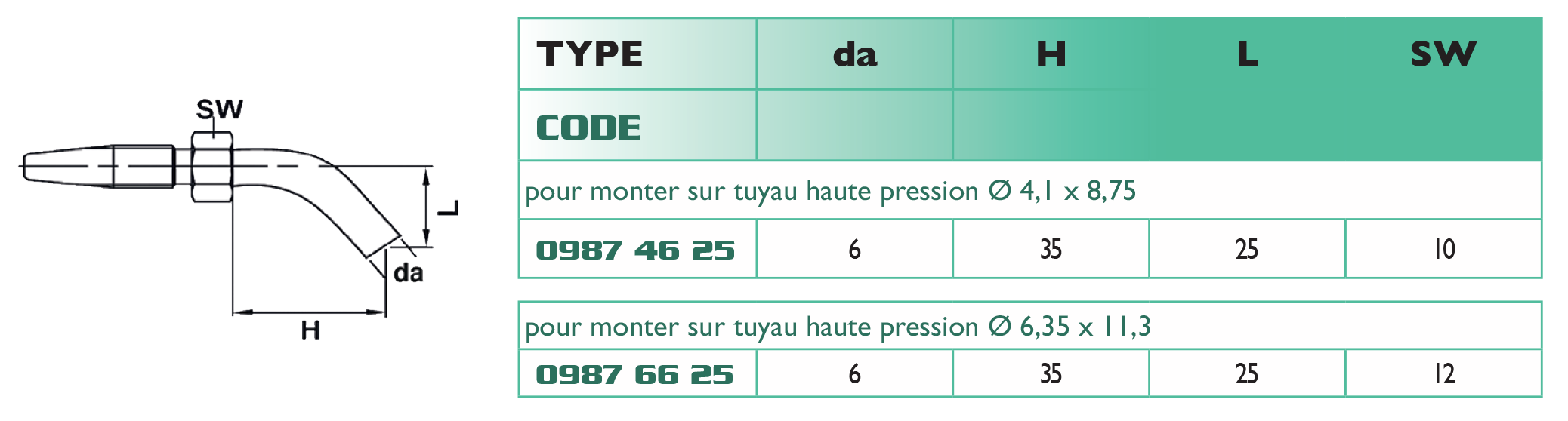 - hose : indication of the external diameter