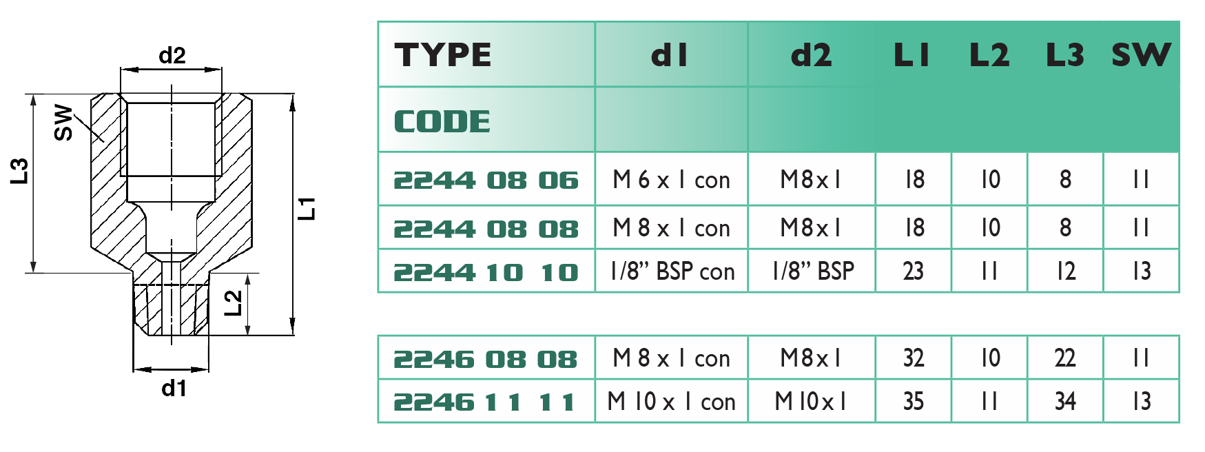 - setas of fittings, ogive-seals and screw-nuts are manufactured in compliance with DIN 2353.