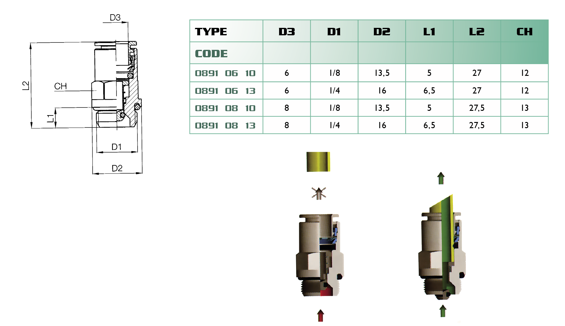 - thread : parallel BSP with O-ring or taper BSP with teflon-coated
