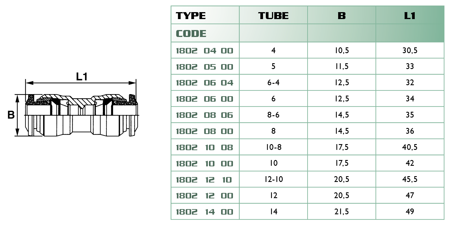 Technical features - construction in nickel plated brass - thrust ring made of resin (POM) - collet made of stainless steel - oil-proof rubber packings NBR - thread : parallel BSP with O-ring or taper BSP with seal-edge ring - working pressure : -0,99 ÷ 15 bar - working temperature : -20°C ÷ 80°C