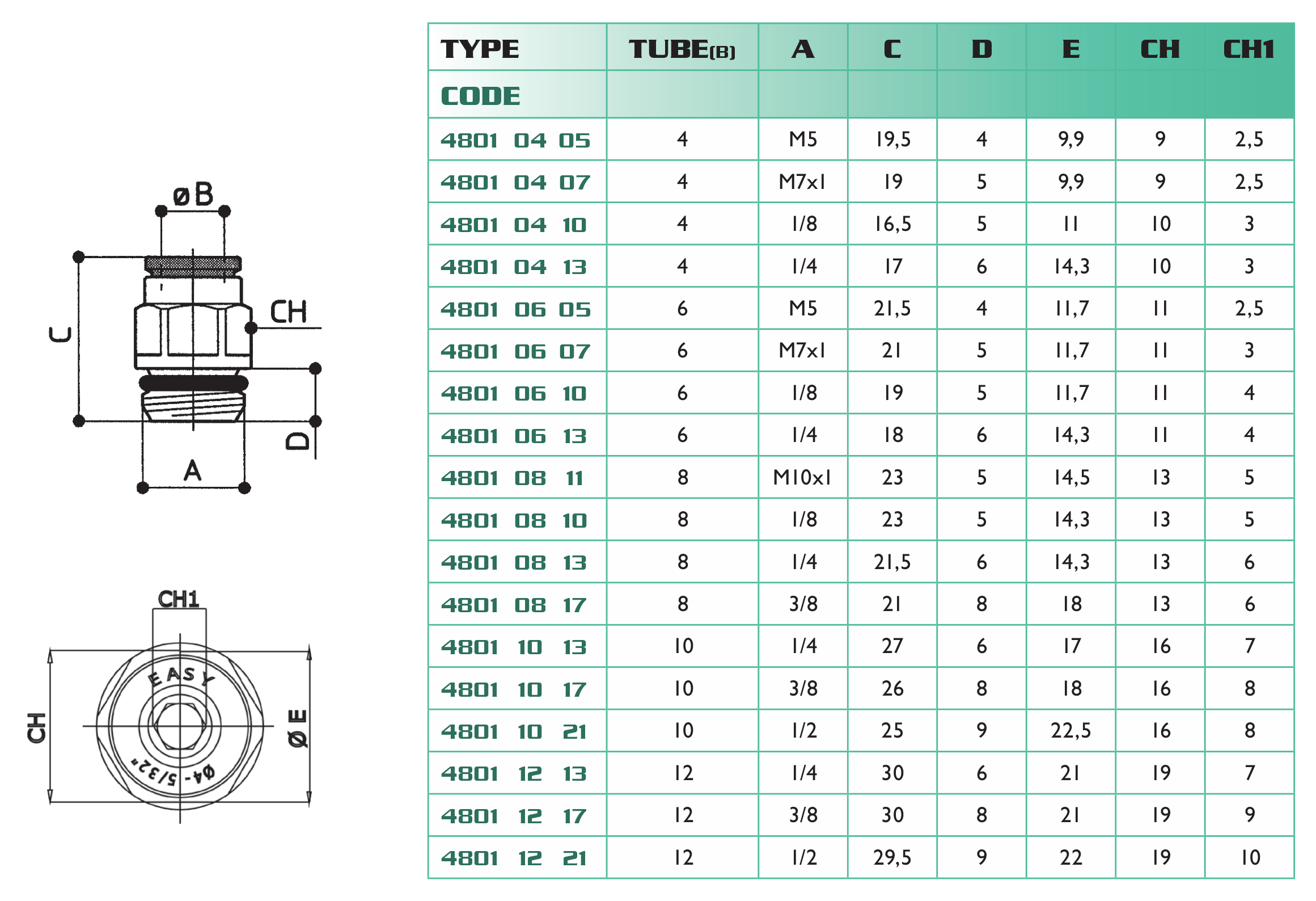 - straight fitting’s body in nickel plated brass
