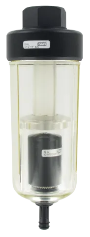 To facilitate the management of recovered condensates, the purgers are equipped with fittings allowing for efficient conveyance of liquids to the appropriate collection point. Additionally, they feature a knurled end for releasing internal pressure during maintenance operations, ensuring safe and convenient handling.