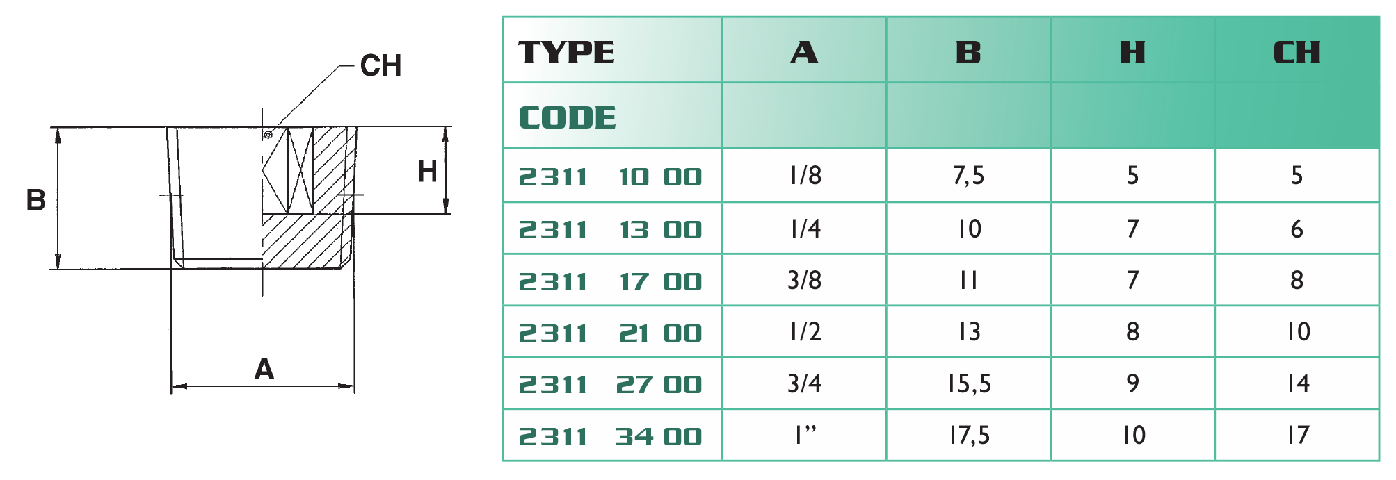 Accessoires de raccordement BOUCHON MÂLE CONIQUE AVEC 6 PANS CREUX