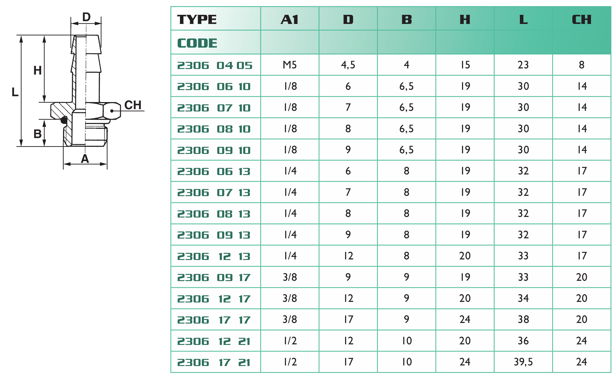 - filetages : mâle conique BSP, mâle cylindrique BSP et femelle cylindrique BSP