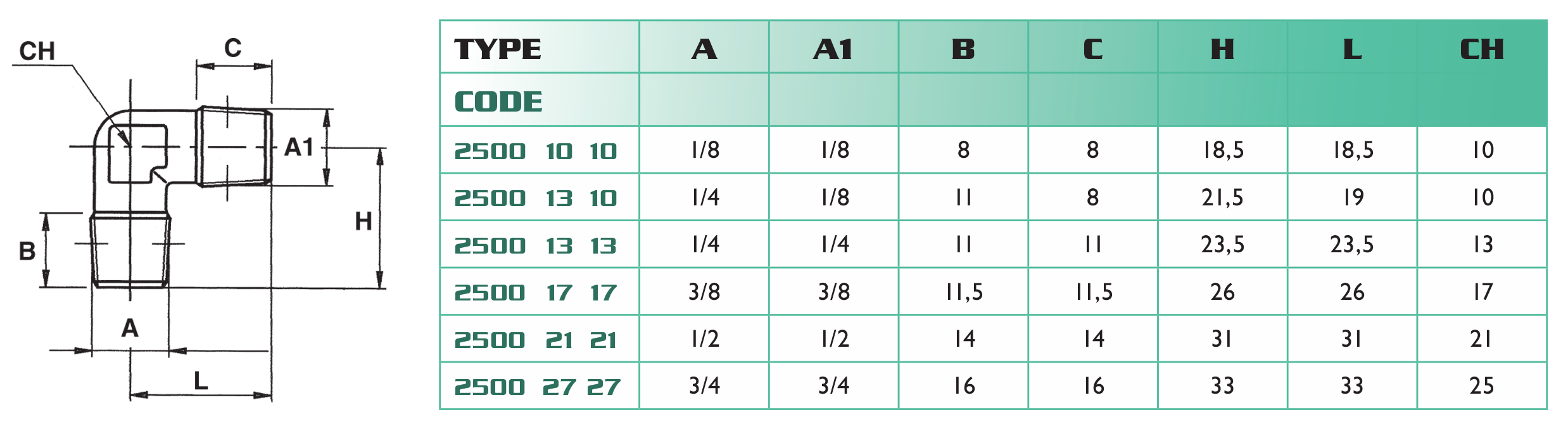 - filetages : mâle conique BSP, mâle cylindrique BSP et femelle cylindrique BSP