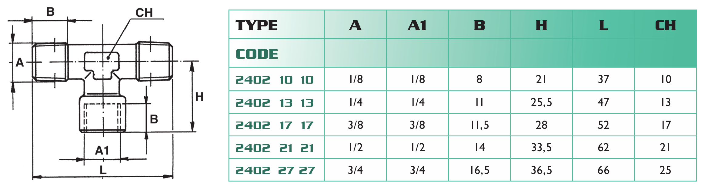 - filetages : mâle conique BSP, mâle cylindrique BSP et femelle cylindrique BSP