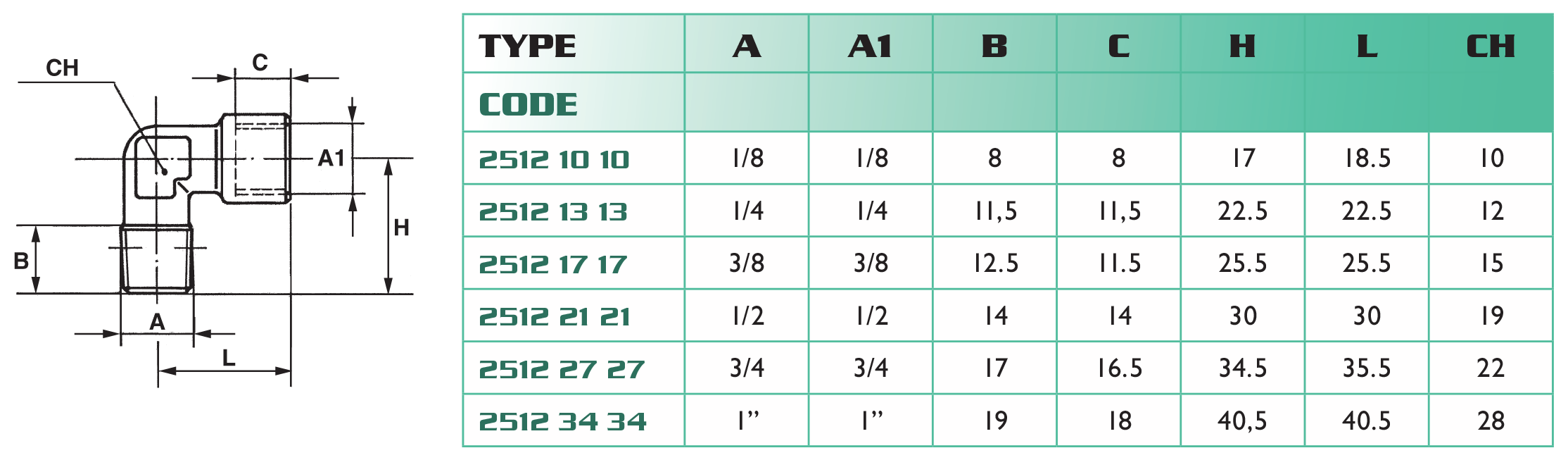 - filetages : mâle conique BSP et femelle cylindrique BSP