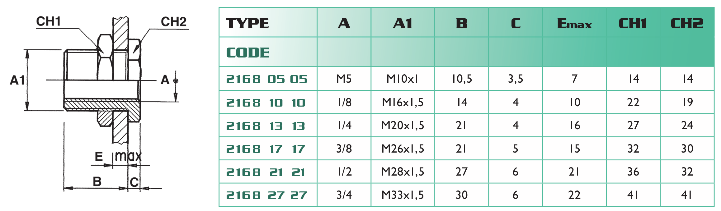 - filetages : mâle conique BSP, mâle cylindrique BSP et femelle cylindrique BSP