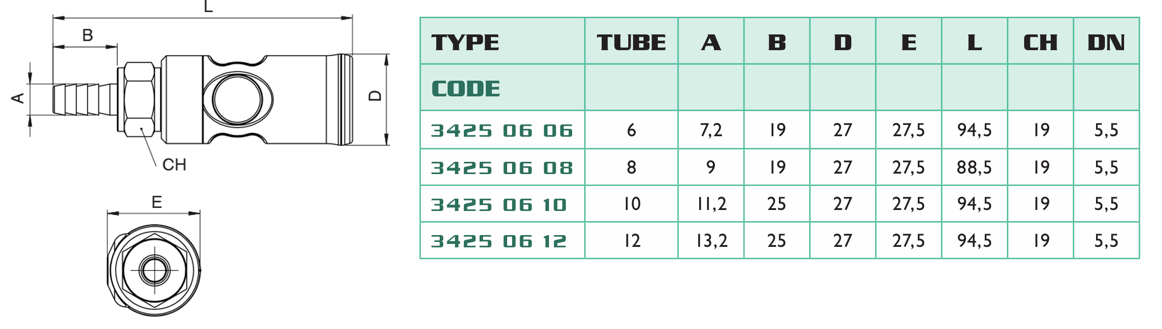 Coupleurs rapides de sécurité, profil ISO 6150 B-12 US MIL 4109 AVEC DOUILLE CANNELÉE