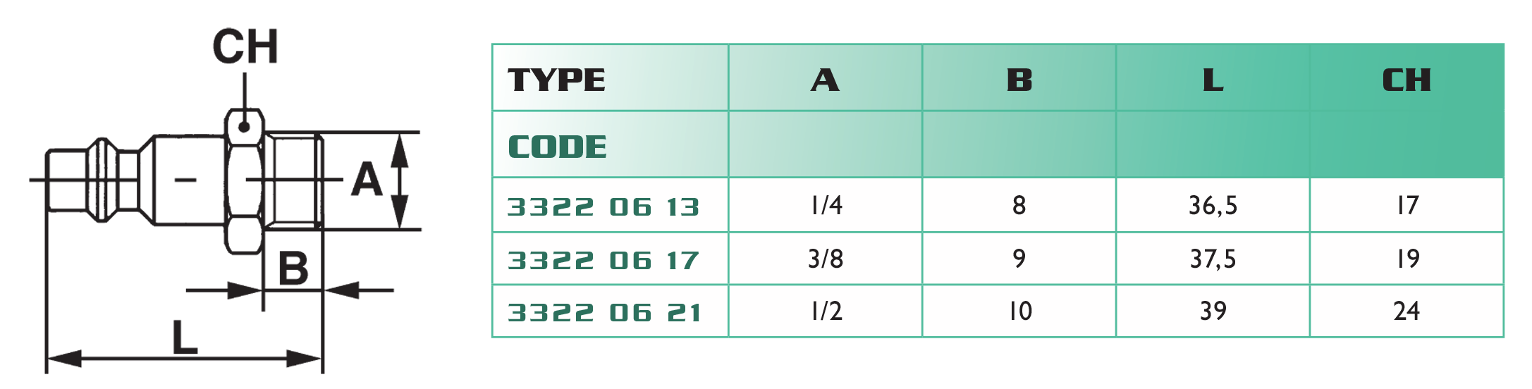 - interchangeabilité : RECTUS 23/24 - PARKER PB/PBF - 1/4” et CEJN 310