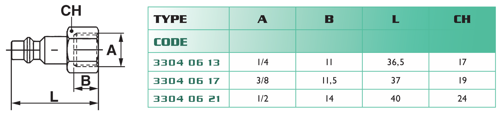 - interchangeabilité : RECTUS 23/24 - PARKER PB/PBF - 1/4” et CEJN 310
