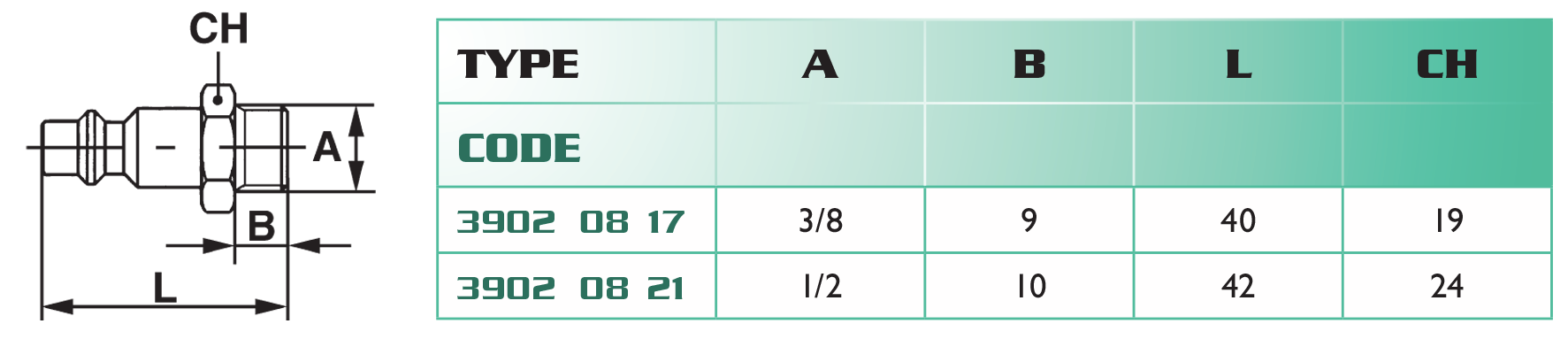- interchangeabilité : RECTUS 23/24 - PARKER PB/PBF - 3/8"