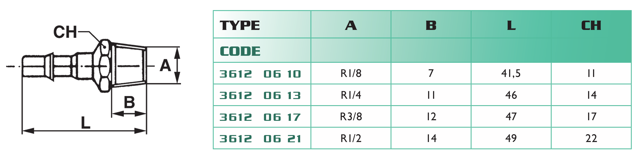 - filetage : mâle BSP cylindrique (coupleurs), mâle BSP conique (embouts) et femelle BSP cylindrique