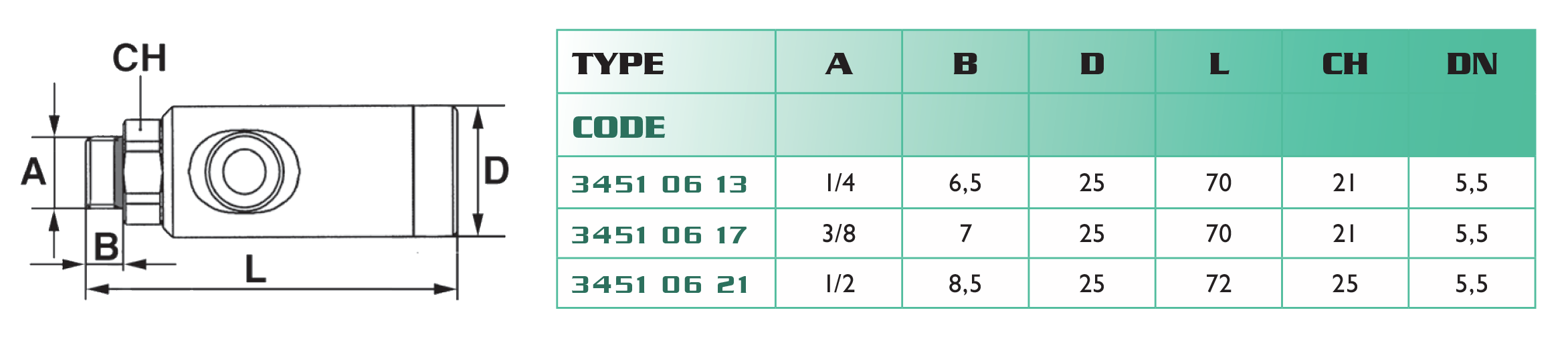 - interchangeabilité : RECTUS 23/24 - PARKER PB/PBF - 1/4” et CEJN 310