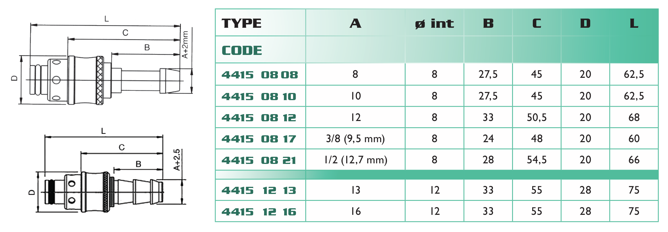 Coupleurs pour moules d’injection plastique CORPS DROIT POUR TUYAU