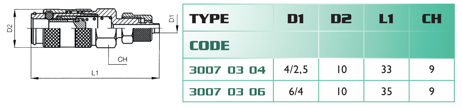 Coupleurs rapides à encombrement réduit DN2.7 AVEC RACCORD À COIFFE