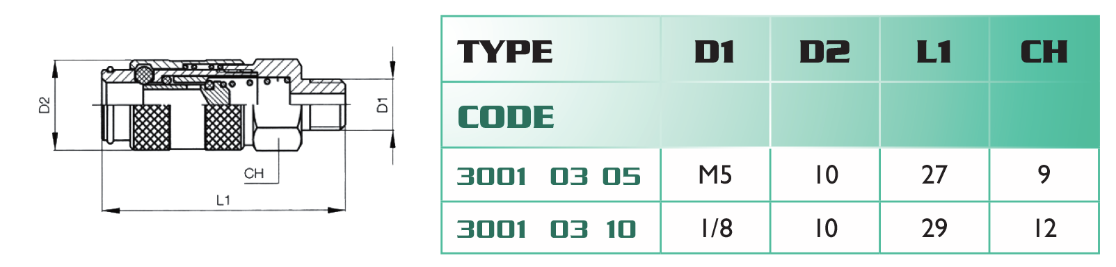 Coupleurs rapides à encombrement réduit DN2.7 MÂLE CYLINDRIQUE