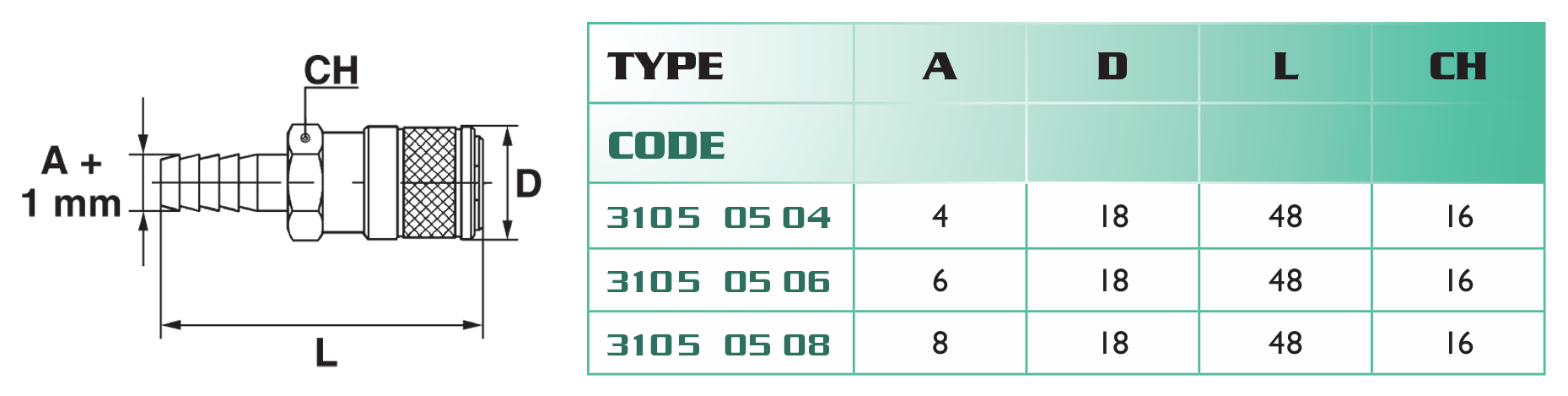 Coupleurs rapides à encombrement réduit DN5 AVEC DOUILLE CANNELÉE