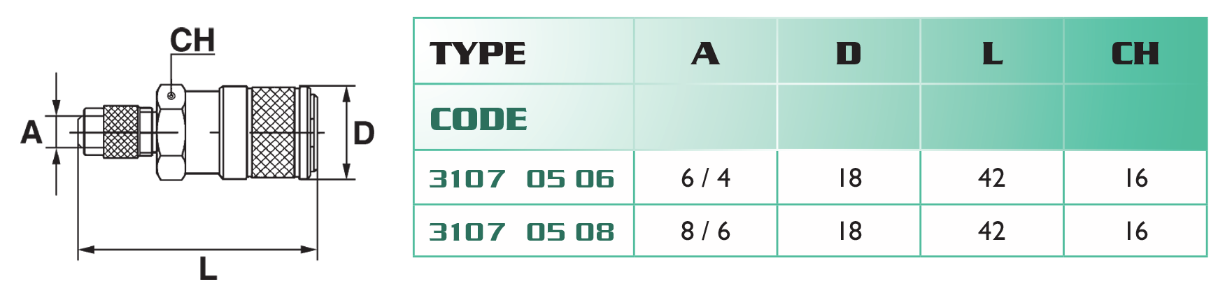 - interchangeabilité : CAMOZZI 5050-5150, RECTUS / LEGRIS 21