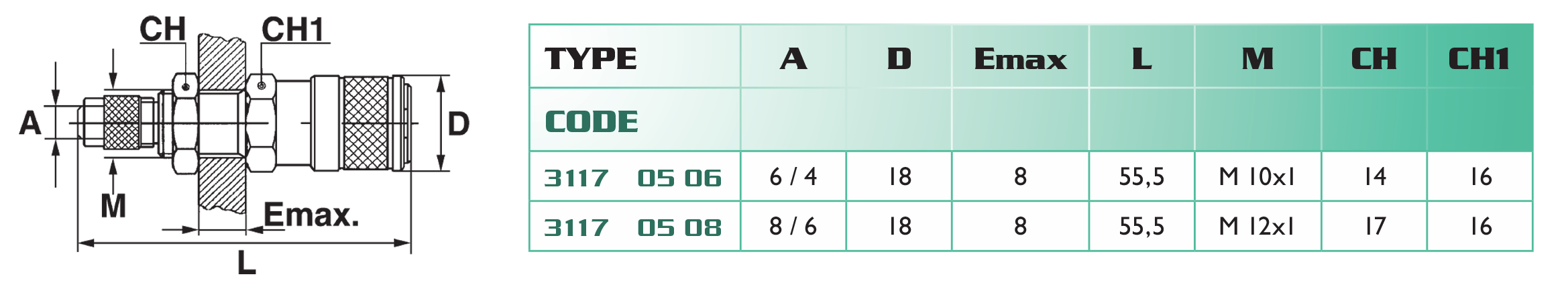 - interchangeabilité : CAMOZZI 5050-5150, RECTUS / LEGRIS 21